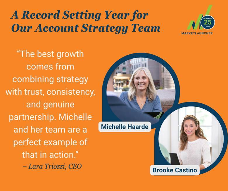 Michelle Haarde, our SVP of Account Strategy, and her team (most notably, Client Services Manager Brooke Castino) recently set a new company record by achieving their annual revenue goal from new business in the first quarter.
