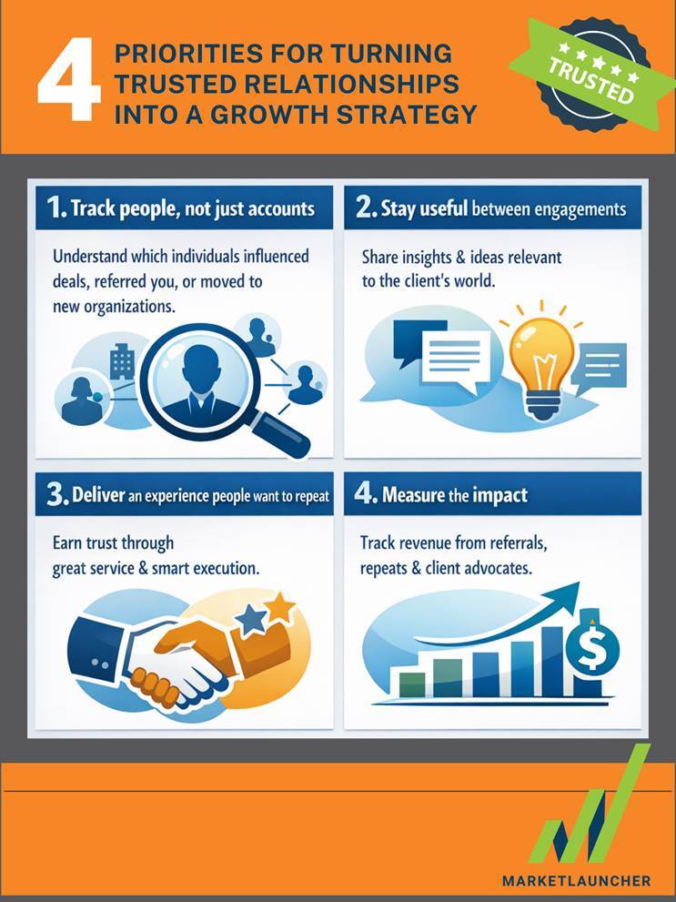 That story captures the bigger point. Your best future opportunities may not come from people discovering you for the first time. They may come from people who already trust your team and bring that trust with them as their career evolves.